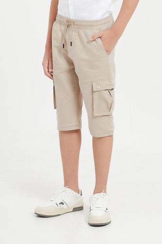 شورت دنيم بجيوب باللون البيج للأولاد الكبار