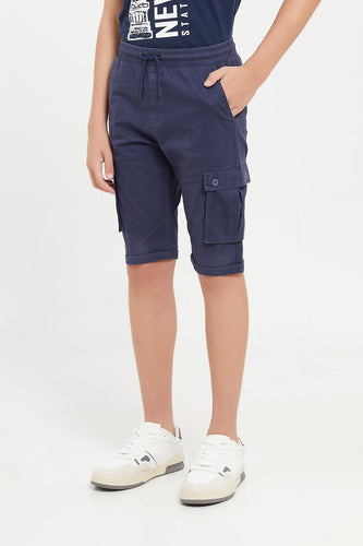 شورت دنيم بجيوب باللون الكحلي للأولاد الكبار