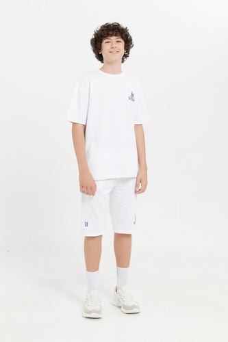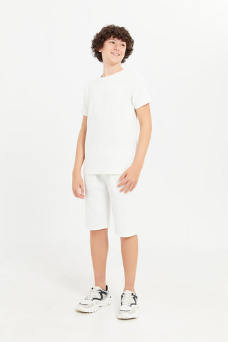 طقم كاجوال باللون الأبيض للأولاد الكبار (قطعتين)