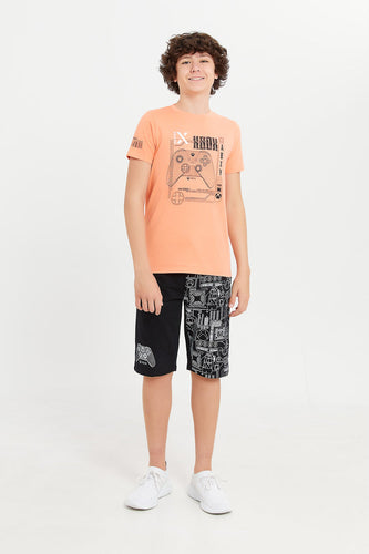 طقم كاجوال باللون البرتقالي والأسود للأولاد الكبار (قطعتين)