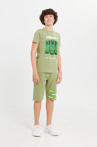 طقم كاجوال باللون الزيتي للأولاد الكبار (قطعتين)