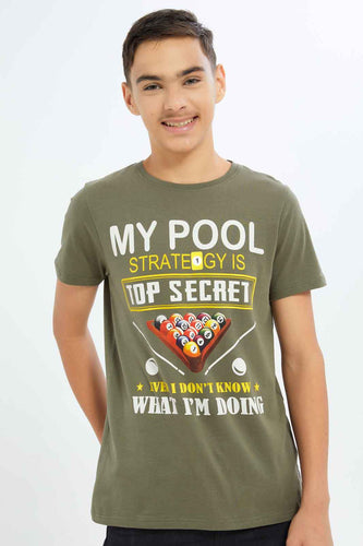 تيشيرت باللون الزيتي للأولاد الكبار