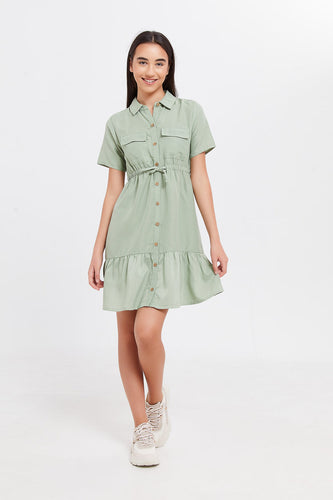 فستان بأزرار أمامية باللون الأخضر للبنات الكبار