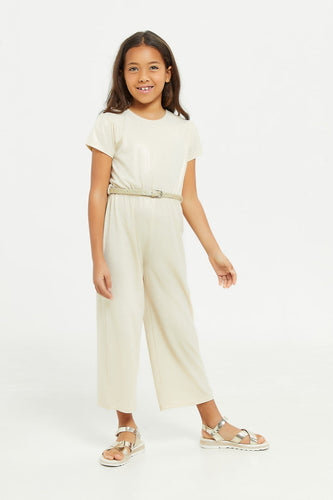 جمبسوت مزينة باللون البيج للبنات الصغار