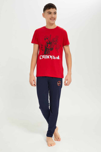 طقم ليلة ديدبول باللونين الأحمر والكحلي للأولاد (قطعتين)