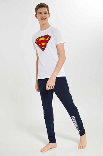 طقم بيجامة مطبوع باللون الأبيض و الكحلي للأولاد الكبار