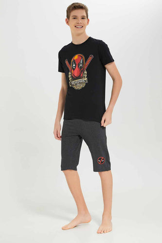 طقم بيجامة ديدبول للأولاد باللون الأسود والفحمي (قطعتان)