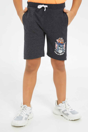 شورت توم أند جيري باللون الرمادي الداكن للأولاد الصغار