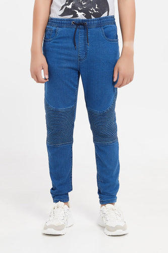 بنطلون جينز بتفاصيل علي الركب باللون الأزرق للأولاد الكبار