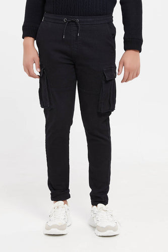 بنطلون بجيوب جانبية باللون الأسود للأولاد الكبار