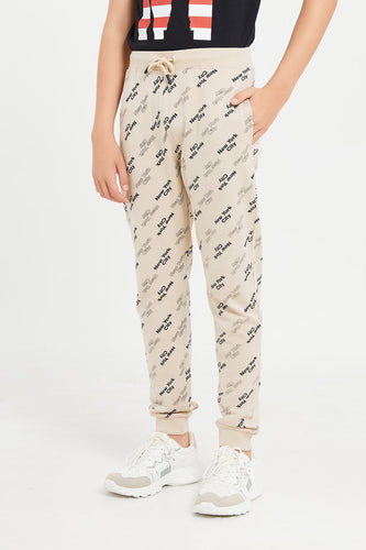 بنطلون رياضي مطبوع باللون البيج للأولاد الكبار