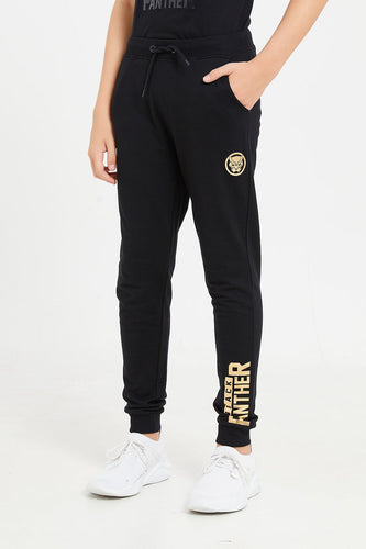 بنطلون رياضي طبعة بلاك بانثر باللون الأسود للأولاد الكبار