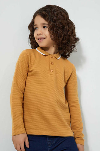 Brown Long Sleeved Polo Shirt قميص بولو باللون البني بأكمام طويلة