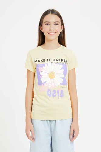 تي شيرت أصفر مطبوع للفتيات الكبيرات
