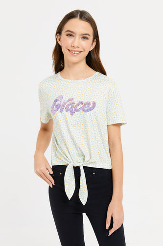 بلوزة بربطة أمامية مطبوعة بالنعناع للفتيات الكبيرات