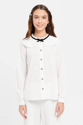 بلوزة بيضاء بياقة بيتر بان للفتيات الكبيرات