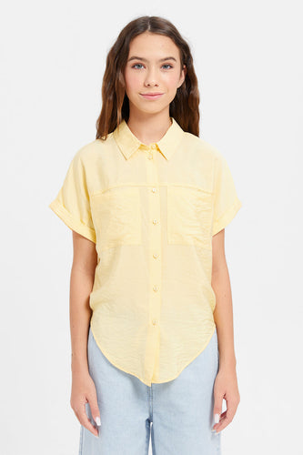 بلوزة ربطة عنق أمامية صفراء للفتيات الكبيرات
