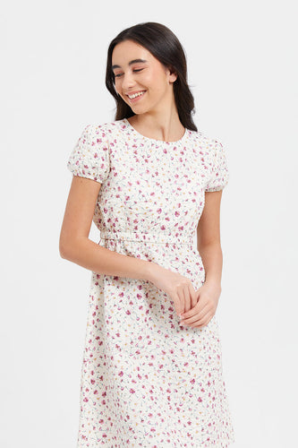 فستان أبيض بطبعة زهور للفتيات الكبيرات