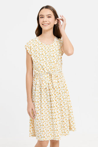 فستان أصفر مطبوع عليه زهور للفتيات الكبيرات