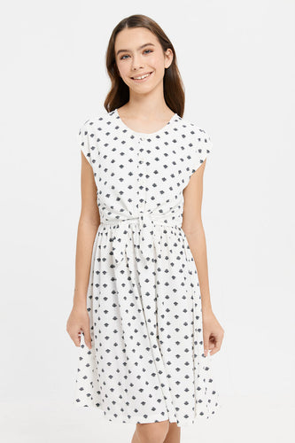 فستان بناتي كبير مطبوع باللونين الأبيض والأسود