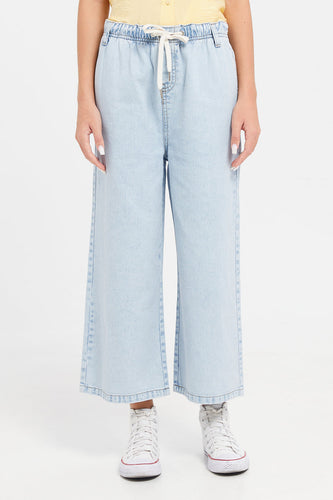 بنطال كولوت واسع الساق باللون الأزرق للفتيات الكبيرات