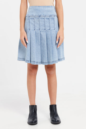 تنورة مطوي من قماش الدنيم الأزرق للفتيات الكبيرات