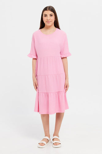 فستان جاكار ذو طبقات باللون الوردي للفتيات الكبيرات