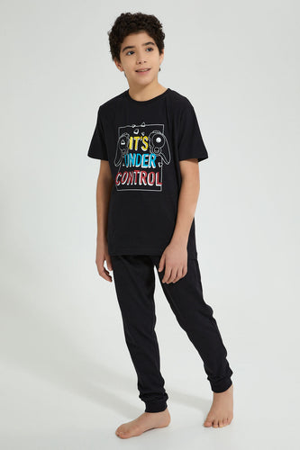 Black Under Control Pyjama Set (2 Piece) طقم بيجامة باللون الأسود بطبعة (قطعتين)