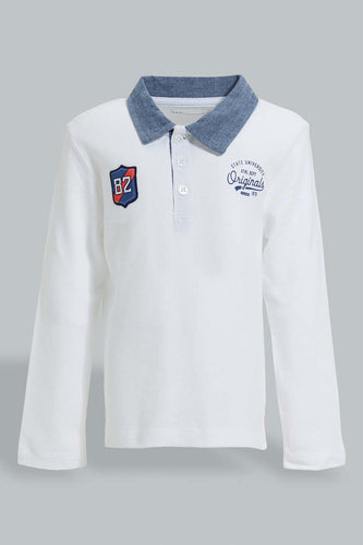 White Basic Polo Shirt تيشيرت بولو سادة باللون الأبيض