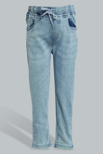 Blue Elasticated Waist Jean For Boys جينز بخصر مطاطي باللون الأزرق للأولاد الصغار
