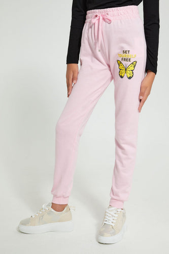 Pink Butterfly Basic Jogger بنطلون رياضي باللون الوردي برسمة فراشة