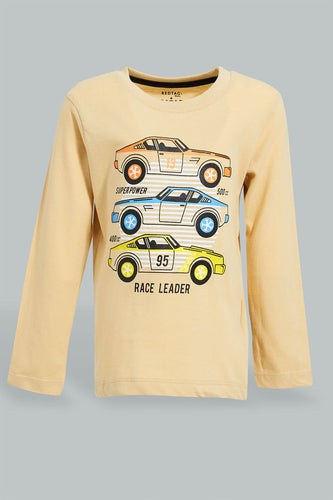 Beige Car Print T-Shirt تيشيرت بطبعة سيارات باللون البيج