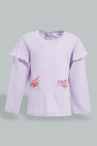 Lilac Flower Applique T-Shirt تيشيرت مزين بأزهار باللون الليلكي
