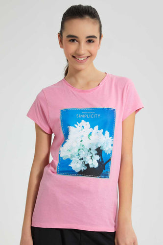Pink Graphic Short-Sleeved T-Shirt تيشيرت باللون الوردي بأكمام قصيرة