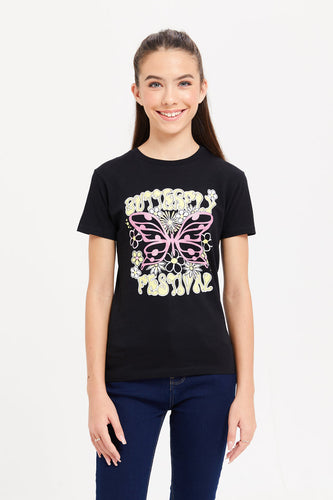 تيشيرت مطبوع باللون الأسود للبنات الكبار