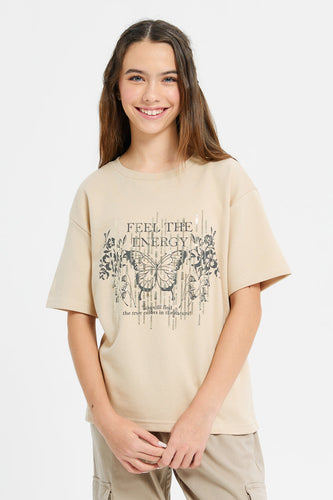 توب مزين باللون البيج للبنات الكبار