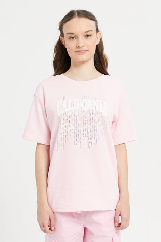 توب مزين بالترتر باللون الوردي للبنات الكبار