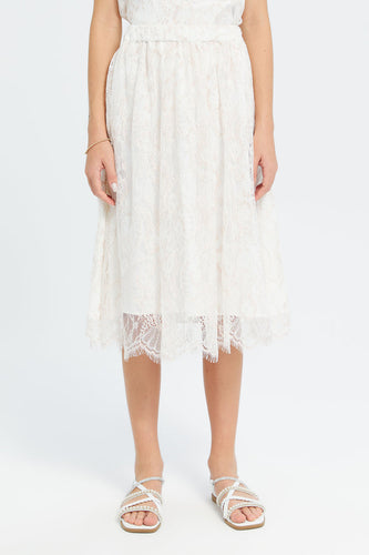 تنورة تول مزينة بالدانتيل باللون الأبيض للبنات الكبار