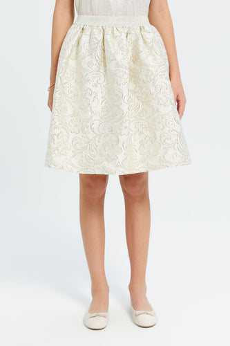 تنورة مزينة باللون البيج والذهبي للبنات الكبار