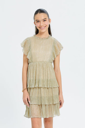 فستان بطبقات باللون الذهبي الميتاليك للبنات الكبار