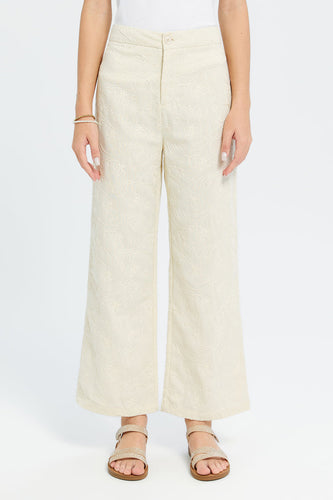 بنطلون واسع مطرز باللون البيج للبنات الكبار