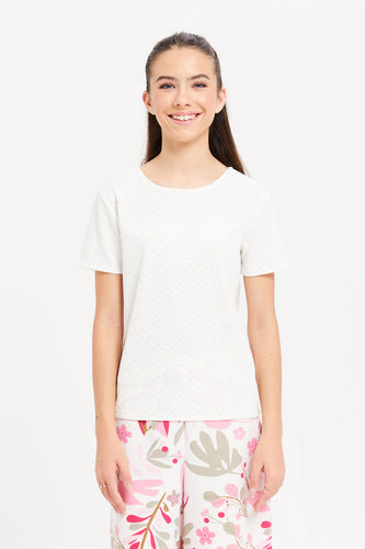 تيشيرت مزين باللون الأبيض للبنات الكبار