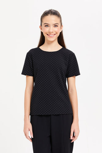 تيشيرت مزين باللون الأسود للبنات الكبار