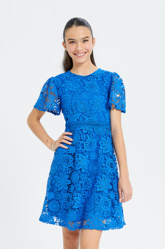 فستان دانتيل أزرق للفتيات الكبيرات