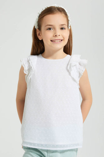 White Dobby Frilled Blouse بلوزة بملمس وتصميم مكشكش باللون الأبيض