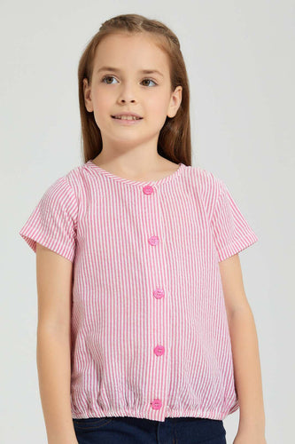 Pink Striped Button Down Blouse بلوزة بأزرار بتصميم مخطط باللون الوردي