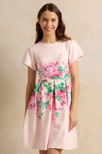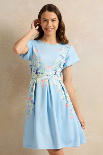 فستان مطبوع باللون الأزرق للبنات الصغار