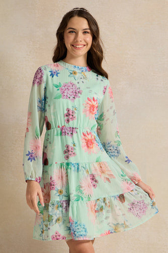 فستان مطبوع باللون الأخضر للبنات الكبار
