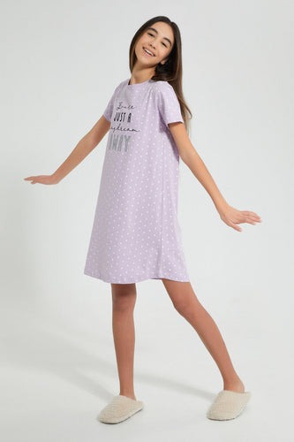 Lilac Polka Dots Nightshirt فستان نوم منقط باللون الليلك