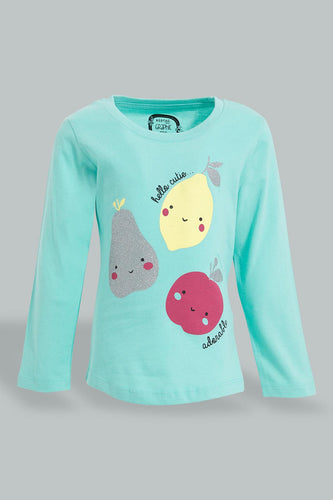 Mint Fruit Print T-Shirt تيشيرت بطبعة فواكة باللون الأزرق الفاتح